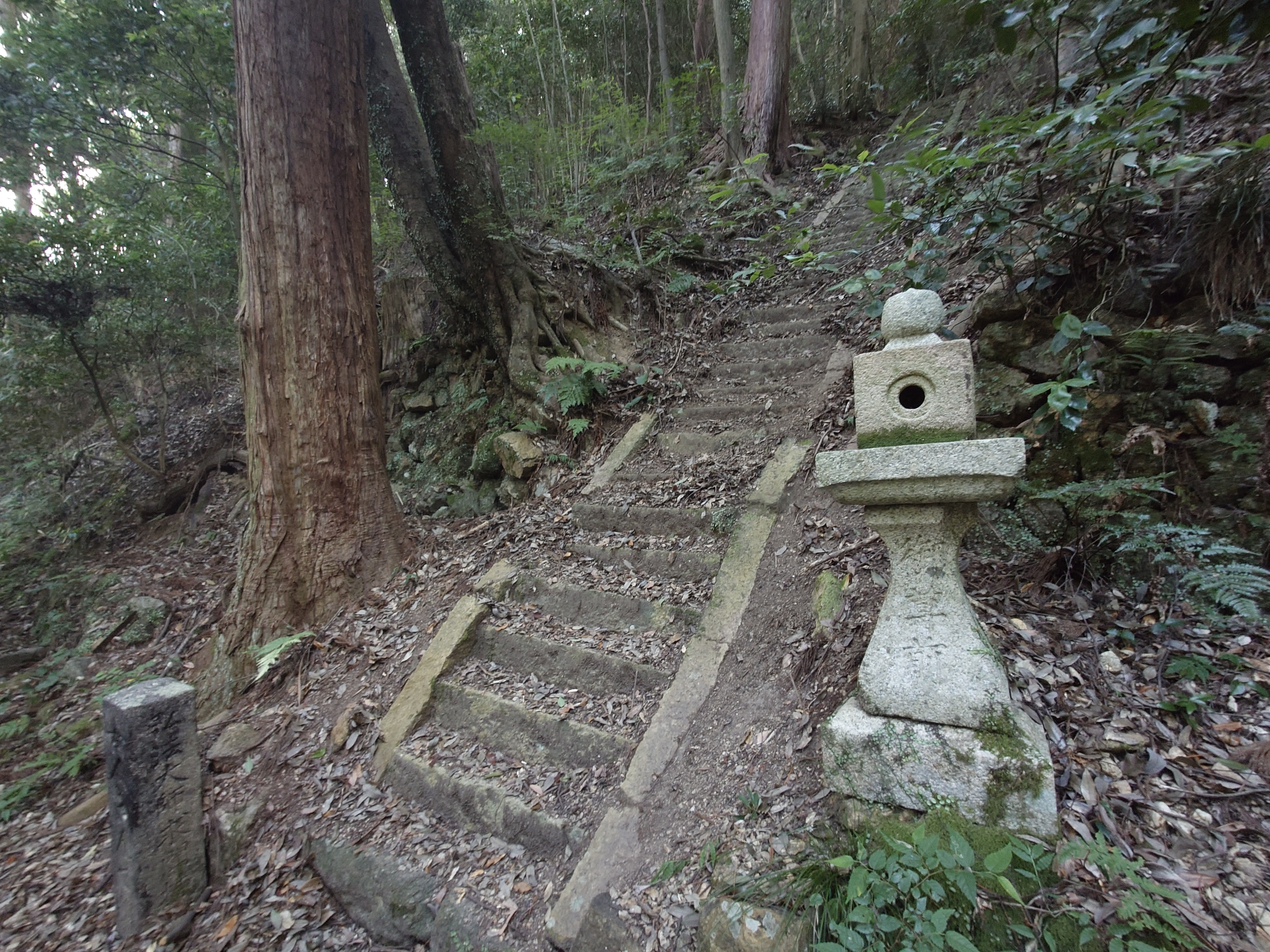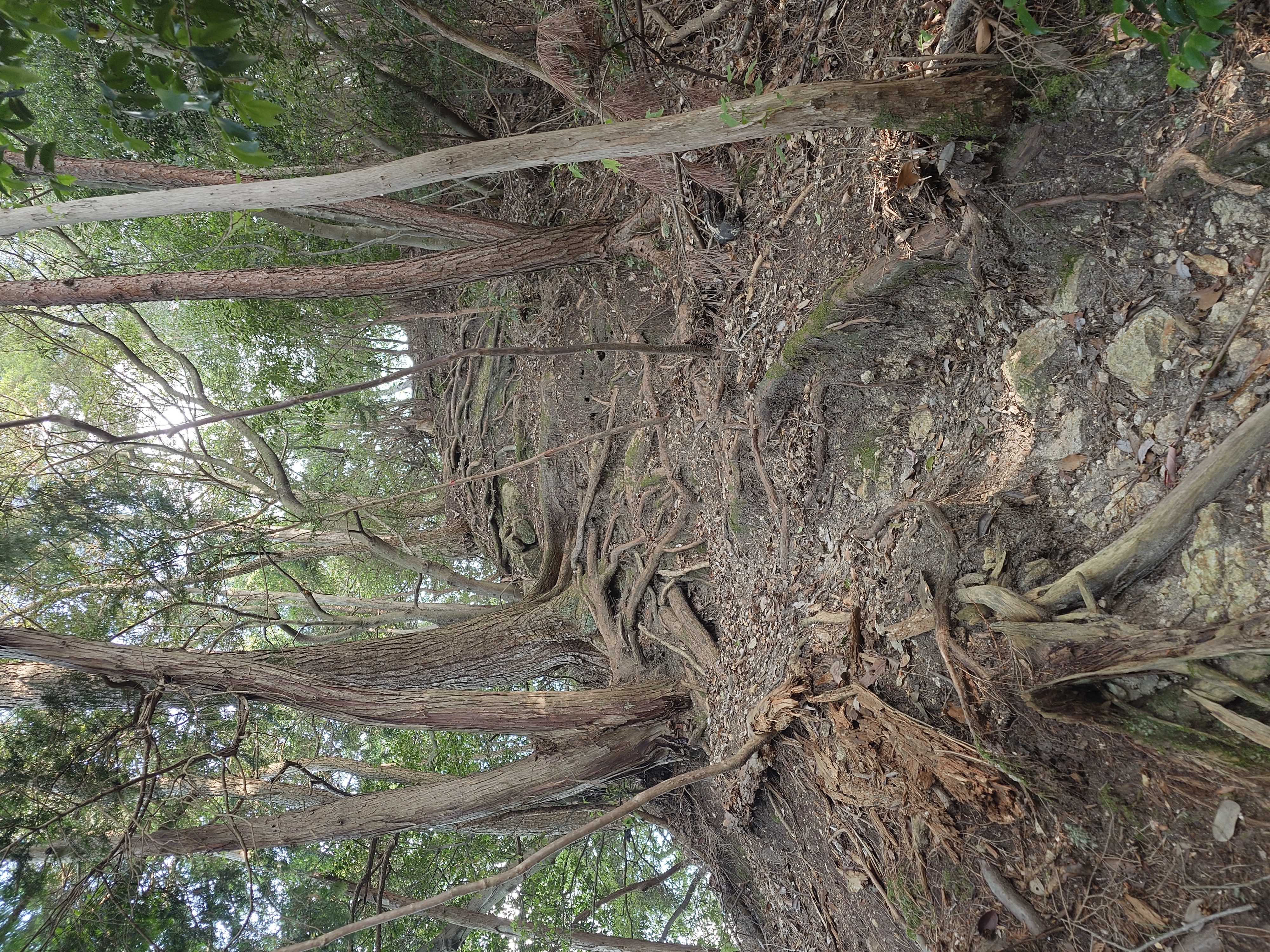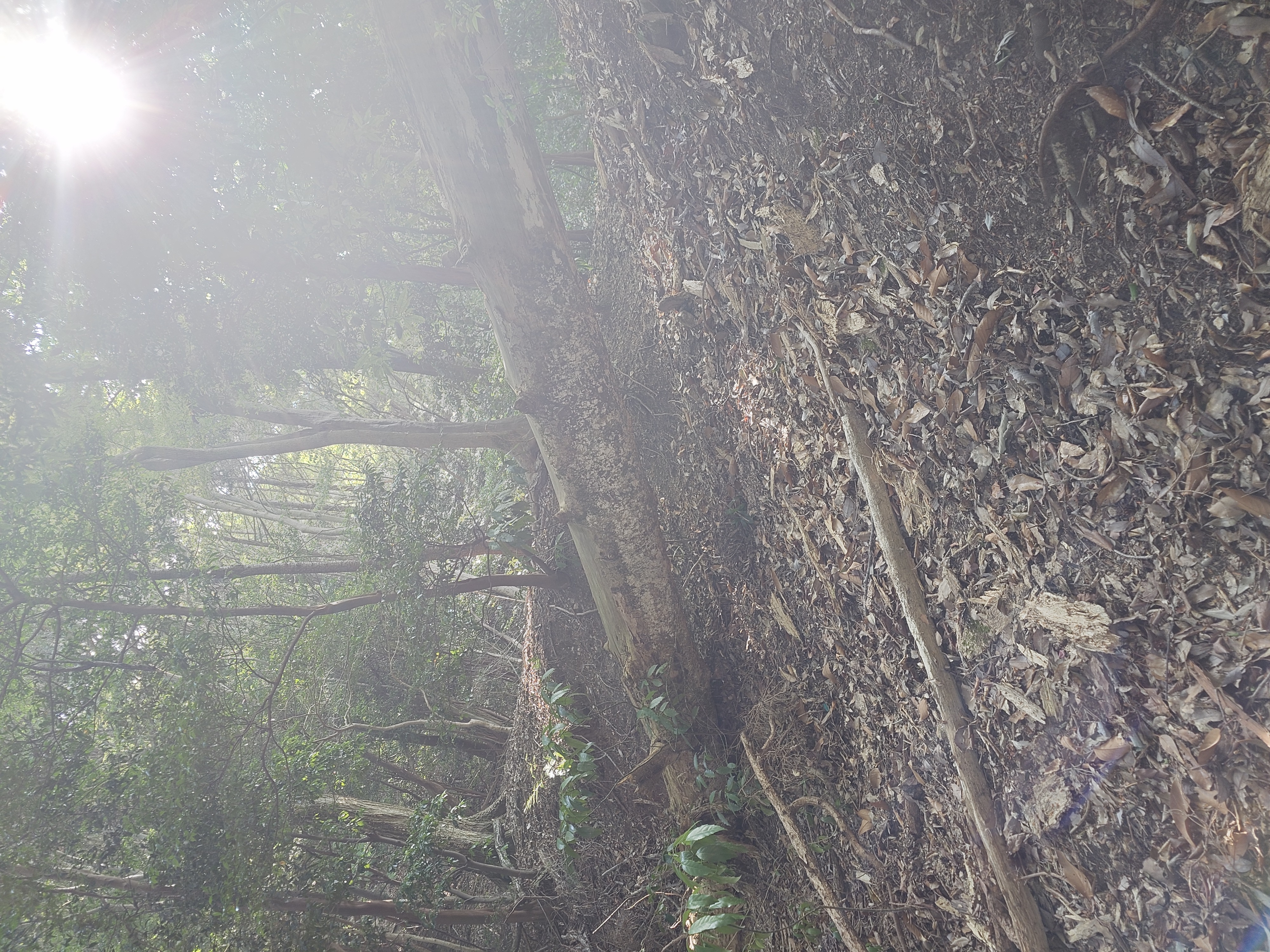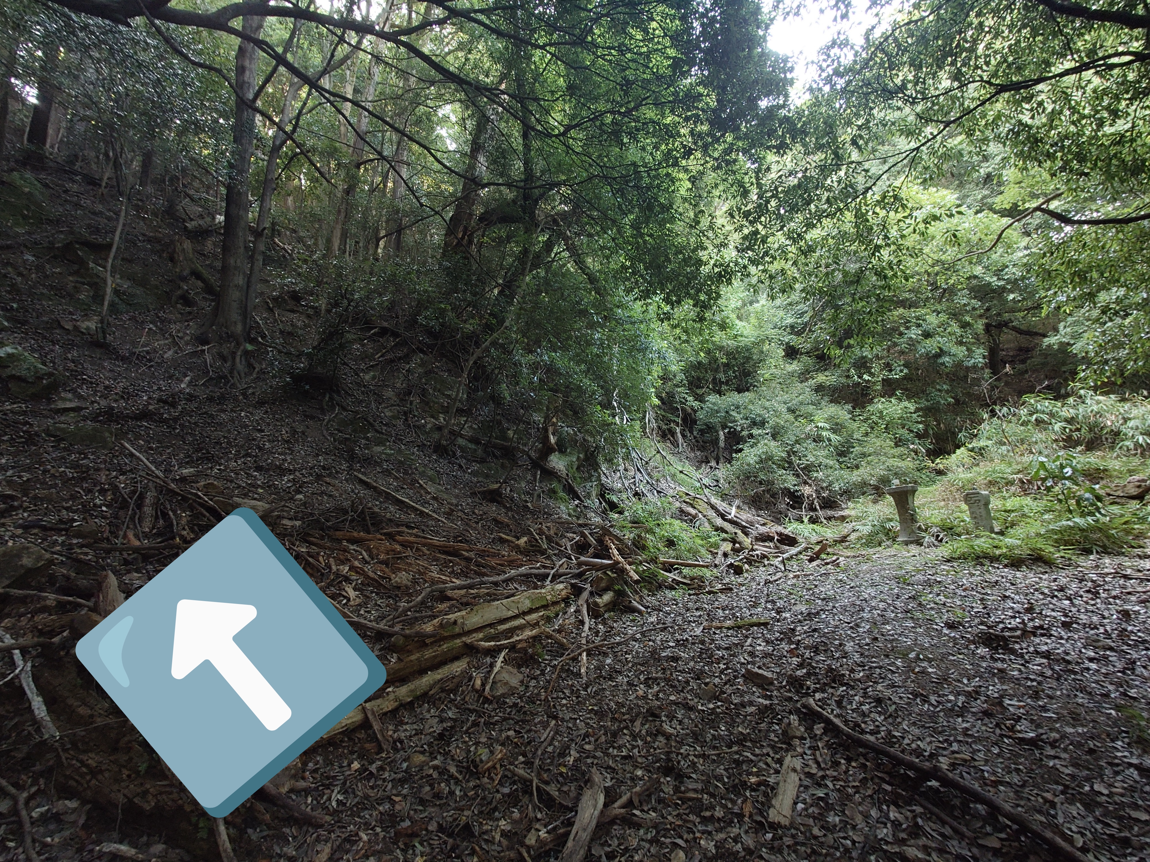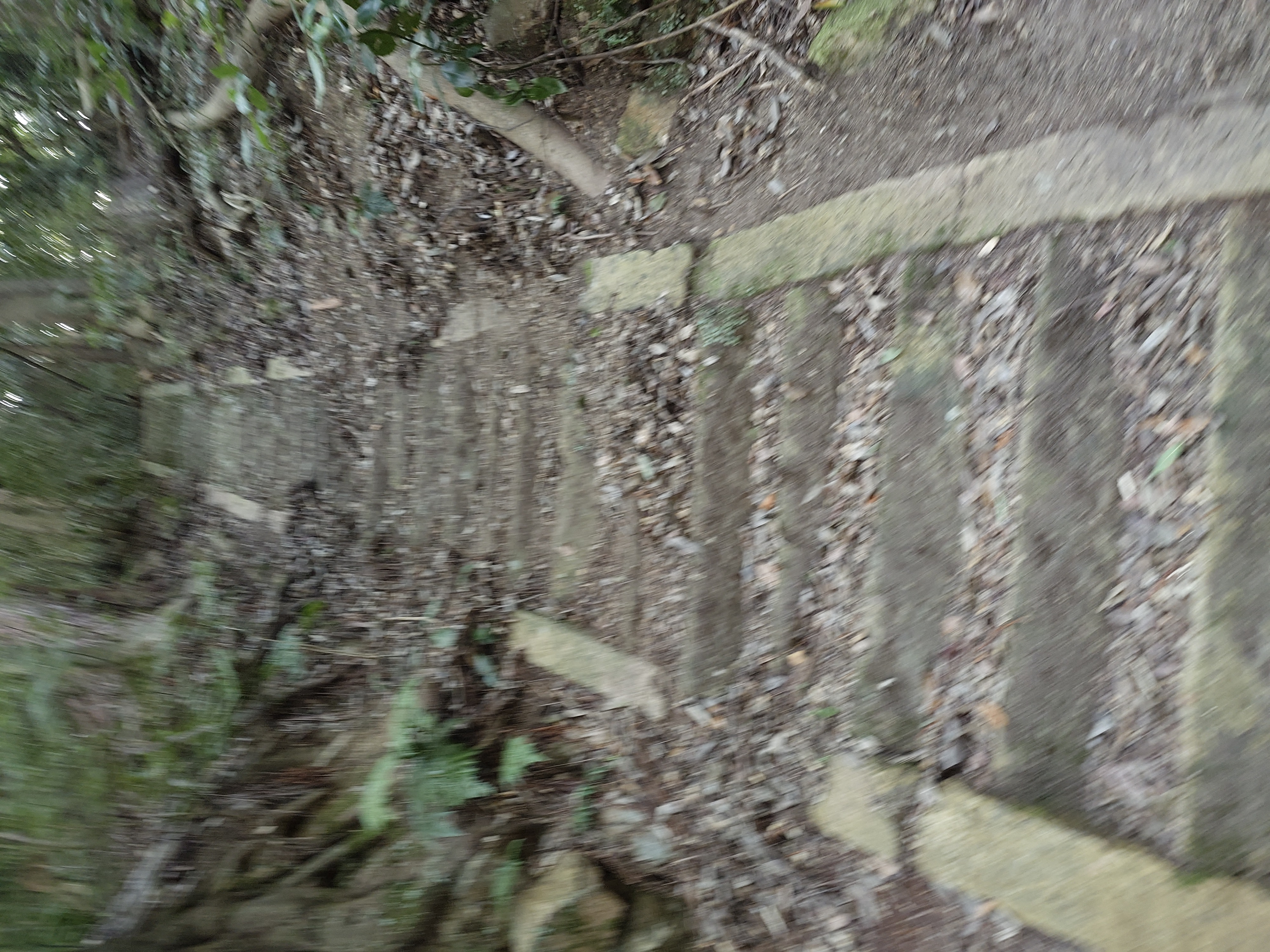 奥まで突き進むと右手の方にこういった崩れかけの階段があります!これが和泉の摩周湖への絶景への入口です。